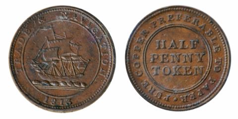 Breton-965. NS-21A3. Pure Copper Preferable to Paper. Half Penny Token. 1813. Trade & Navigation. ICCS Extra Fine- 40.