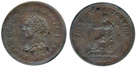 Breton-967. NS-22. Trade & Navigation. 1838. Pure Copper Preferable to Paper. ICCS Mint State-60.
