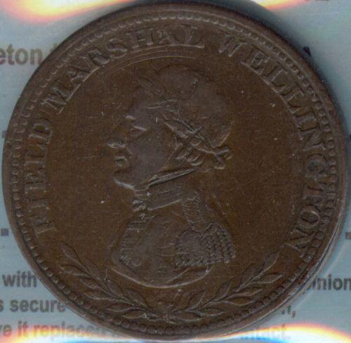 Breton 970, Charlton WE-4A CCCS certified F-12; Overstruck. One Penny Token, Field Marshal Wellington, Undated, Obverse and Reverse Wreath.