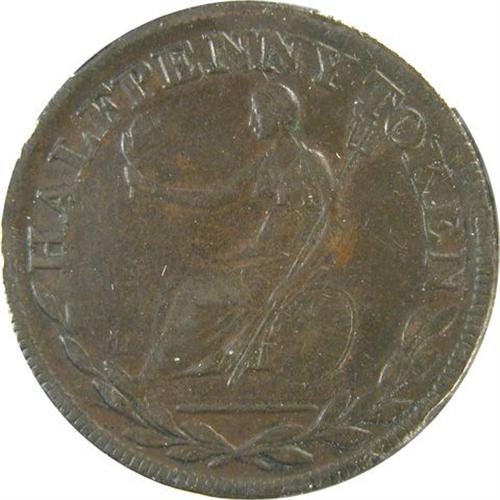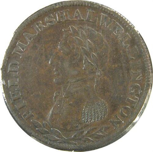Canada Pre-Confederation Token. Breton 971, Field Marshal Wellington Half Penny, Engrailed, CH WE-2A2, Cornwell AU+. A sharp and virtually fully lustrous example