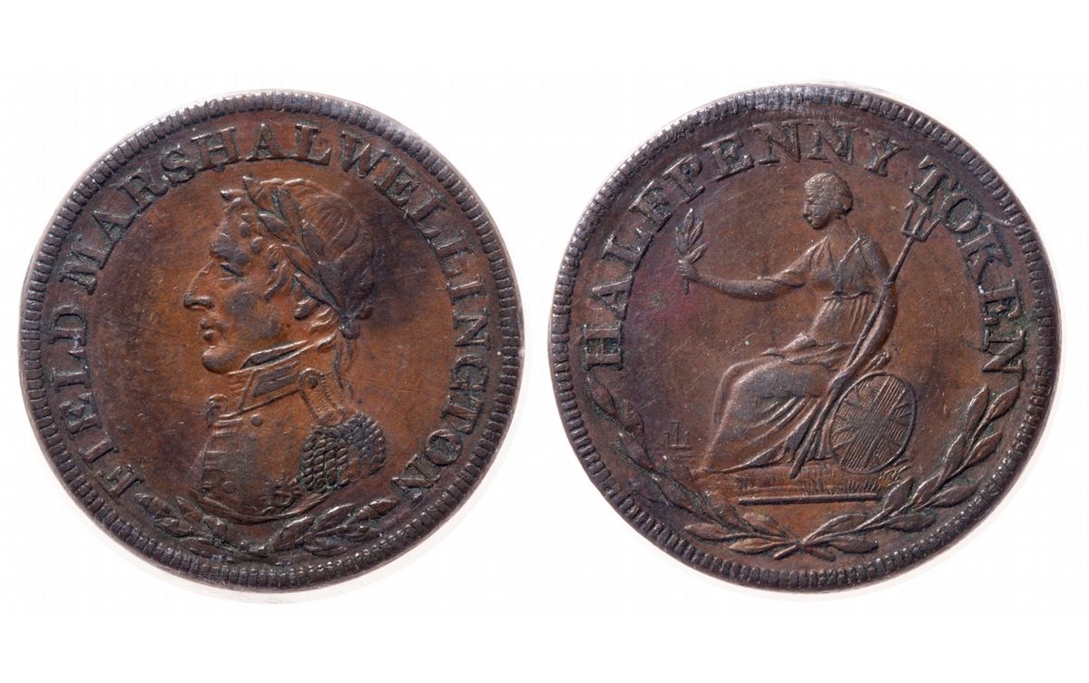 Breton-971. WE-2A2. 1/2 Penny. Field Marshall Wellington. Engrailed. ICCS Mint State-60.