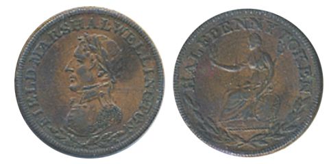 WE-2A2. 1/2 Penny. Field Marshall Wellington. Engrailed. ICCS Mint State-60.