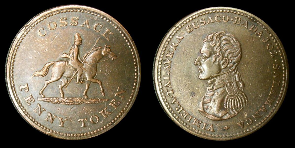 Breton # 985, CH-WE-13 'Cossack' One penny token,EF+. Lty. Cld.