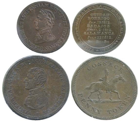 WE-13. Cossack (1813). ICCS Very Fine-30; Breton-987. WE-11A1. Cuidad Salamanca. ICCS Mint State-60. Lot of two (2) tokens.