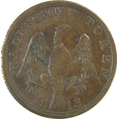 Canada Pre-Confederation Token. Breton 994, 1813 Half Penny Token, Copper, CH LC-54B1, Cornwell AU. Near fully lustrous