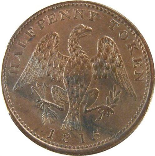 Canada Pre-Confederation Token. Breton 994, 1815 Half Penny Token, Clockwise Wreath, CH LC-54D2, Cornwell Unc. A well struck piece with nicely lustrous surfaces