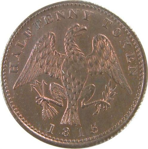 Canada Pre-Confederation Token. Breton 994, 1815 Half Penny Token, Clockwise Wreath, CH LC-54D2, ICCS AU-55, Cleaned