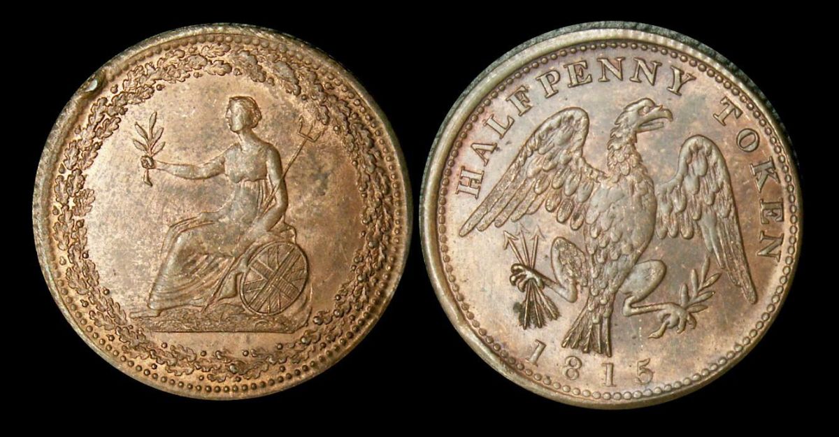 Breton # 994, CH-LC-54d2 1815 half penny token Choice Unc. W