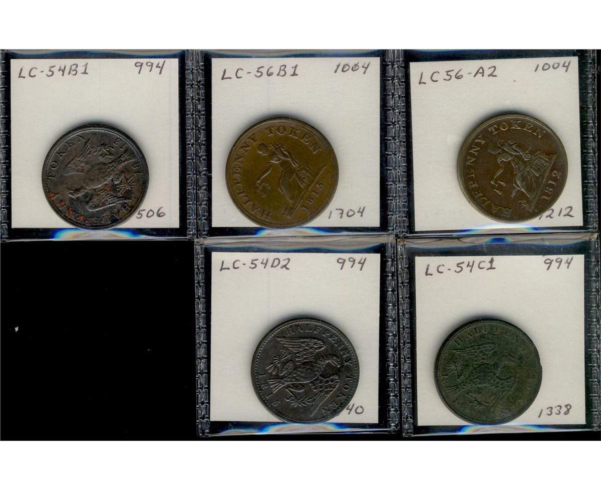 Breton 994 LC-54B1, LC-54C1, LC-54D2, LC-56A2 & LC-56B1. Lot of 5 tokens Fine to EF.