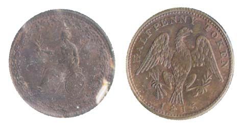 LC-54D2. 1/2 Penny. 1815. A lustrous Red and Brown Unc.