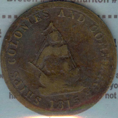 Breton 996, Charlton PE9B CCCS certified VF-20. Ship Colonies & Commerce, 1815, For Publick Accomodation, Brass.