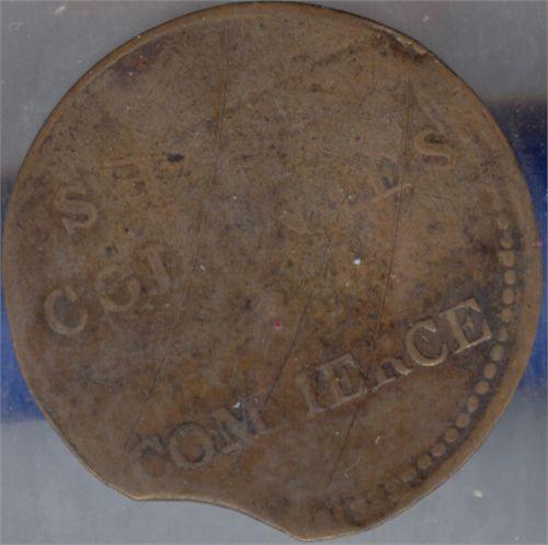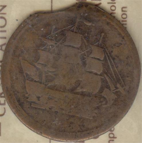 Breton 997, Charlton BL-24A3 ICCS certified F-12; Clipped. Ship Colonies & Commerce, Drooping Flag, Fisrt "S" of SHIPS is right over the first "O" of COLONIES, Thin, Coinage.