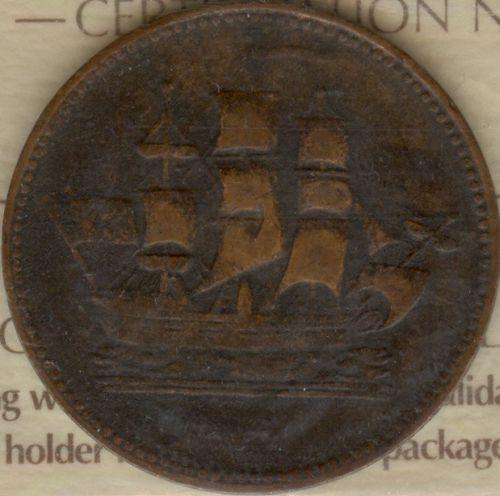 Breton 997, Charlton PE10-28 ICCS certified F-12. Single H Mintmark, British Flag Straight, Cut Knob Ampersand, Toothed Border Reverse, Blunt tail to "R" of COMMERCE.
