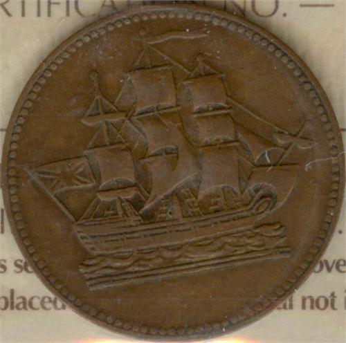 Breton 997, Charlton PE10-29 ICCS certified VF-30. Single H Mintmark, British Flag Straight, Cut Knob Ampersand, Toothed Border Reverse, First "E" of COMMERCE Nicked, First "S" in SHIPS not double-cut.