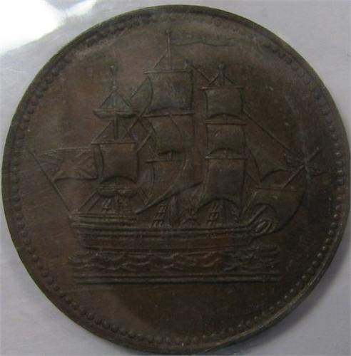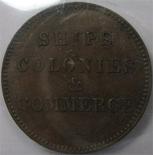 Breton 997, Charlton PE10-30 ICCS certified MS-60. Single H Mintmark, British Flag Straight, Cut Knob Ampersand, Toothed Border Reverse, First "S" of SHIPS and last "E" of COMMERCE double-cut, Last "E" of COMMERCE complete centre-stroke.