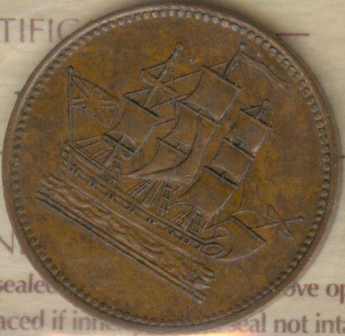 Breton 997, Charlton PE10-38 ICCS certified MS-60. Double H Mintmark, British Flag Straight, Cut Knob Ampersand, No line to unfurled sprit-sail.