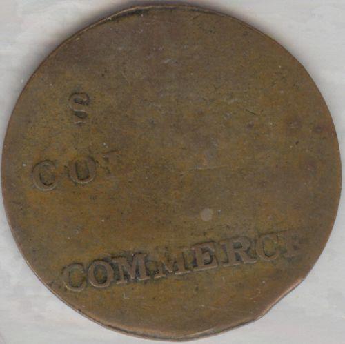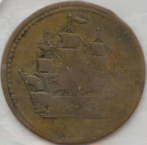 Breton 997, Charlton PE10-4 ICCS certified VF-20; Clip. No Mintmark, British Flag Drooping, Bar Ampersand, Obverse border beads, First "S" of SHIPS to right "O" of COMMERCE. Rare token in any grade.