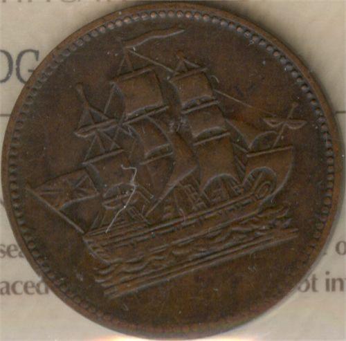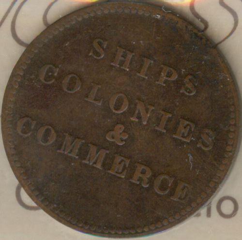 Breton 997, Charlton PE10-41B ICCS certified VF-20. Double H Mintmark, British Flag Straight, Round Knob Ampersand, Yard of unfurled sprit-sail not beyond sail, Offset "M" in COMMERCE, Coinage.