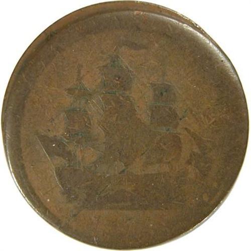 Breton 997 Ships Colonies & Commerce, No Mintmark, Drooping British Flag, Thick Flan, PE-10-3, BL-24A1, SCC-03a, VG, struck off centre