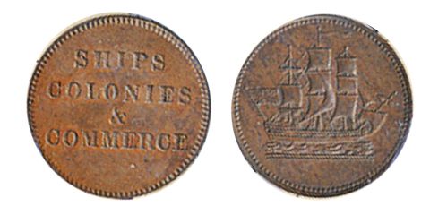 PE10-31. Lees-31. Ships, Colonies & Commerce. ICCS Mint State-60. Light tan.