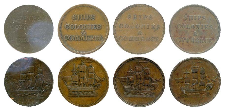 PE10-2, PE10-7, PE10-9, PE10-10A. Lees-2, 7, 9, 10A. Lot of four (4) tokens, all Very Fine.