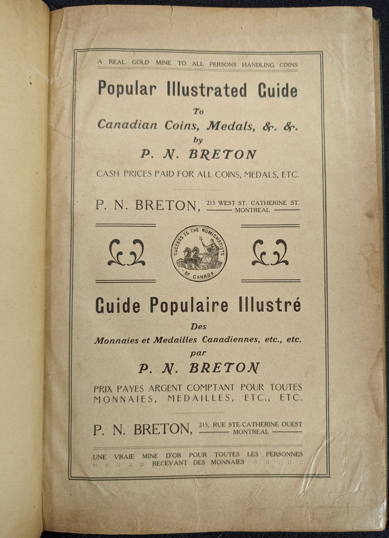 Breton, P.N. TWO CLASSIC WORKS ON CANADIAN COINS AND MEDALS BY BRETON. P.N. Breton. 1894,1912. 8vo. pages. The two works by Breton in this lot include