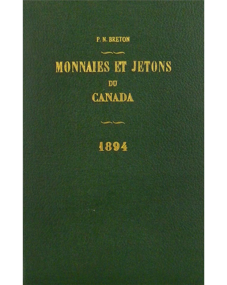 Breton, P.N. HISTOIRE ILLUSTRÉE DES MONNAIES ET JETONS DU CANADA / ILLUSTRATED HISTORY OF COINS AND TOKENS RELATING TO CANADA. Montreal, 1894. 4to, later green pebbled cloth, gilt. 239, (1) pages; illustrated throughout, with some tissue-guarded plates. Covers are fine, but text within is worn, with many taped repairs. Good only. The classic work on Canadian numismatics, of particular use for the various tokens. The usefulness of the text is testified to by the fact that someone bothered binding this beat-up copy. Clain-Stefanelli 8517*. Grierson 219.