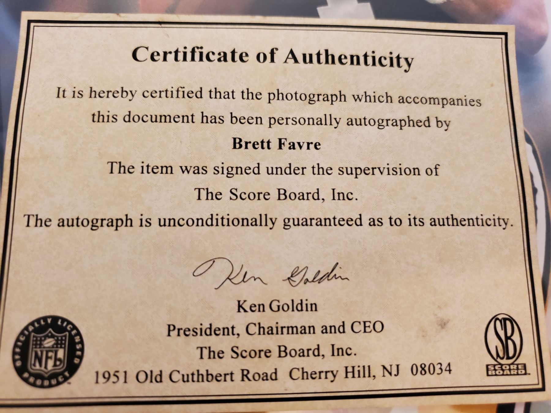 Brett Farve Auto 8x10 in Frame with COA