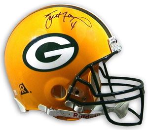 Brett Favre spent the majority of his 20 year career with the Green Bay Packers of the National Football League. Favre is the only quarterback in NFL history to throw for over 70,000 yards, over 6,000 completions, and over 10,000 pass attempts.He made an NFL record 297 consecutive starts. He is the only player to win the AP Most Valuable Player three consecutive times (1995–97), and is one of only six quarterbacks to have won the award as well as the Super Bowl in the same season. He has led teams to eight division championships (1995, 1996, 1997, 2002, 2003, 2004, 2007, 2009), five NFC Championship Games (1995, 1996, 1997, 2007, 2009), and two Super Bowl appearances (Super Bowl XXXI, Super Bowl XXXII), winning one (Super Bowl XXXI). He holds many NFL records, including most career passing yards, most career pass completions, most career pass attempts, most career interceptions thrown, most consecutive starts by a player, most career victories as a starting quarterback, most sacked, and most fumbles. Brett Favre has hand autographed this Green Bay Packers Full Size Proline helmet. Brett Favre Hologram, Photo of Signing, and Certificate of Authenticity.