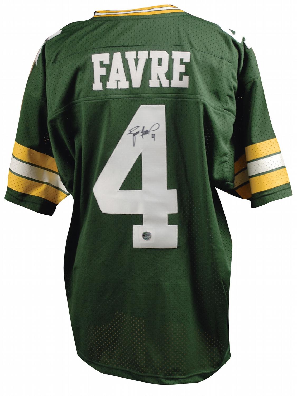 Replica Green Bay Packers football jersey, with sewn on letters and numbers, signed in black felt tip on the number on the back. In fine condition.