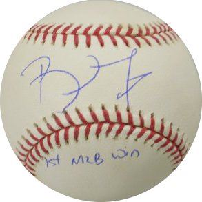 Brett Myers threw his first career shutout in June 2003 against the Boston Red Sox. Brett Myers has hand autographed this Official Major League Baseball with 1st MLB Win Inscription. ASI. Hologram and Certificate of Authenticity.
