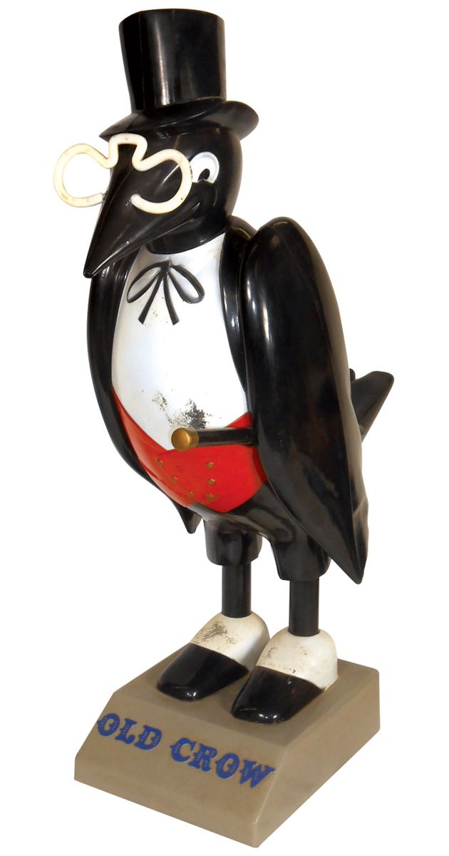 Breweriana, Old Crow Whiskey adv display figure, molded plastic, nice large size, VG cond, 31"H x 9"W x 13"D.