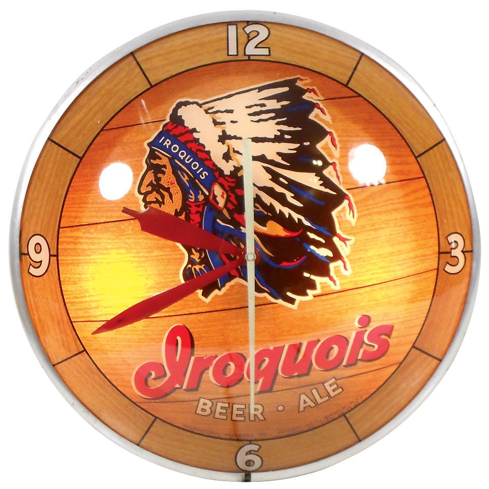 Breweriana clock, Iroquois Beer-Ale double-bubble light-up clock, Advertising Works, Inc.-Cincinnati