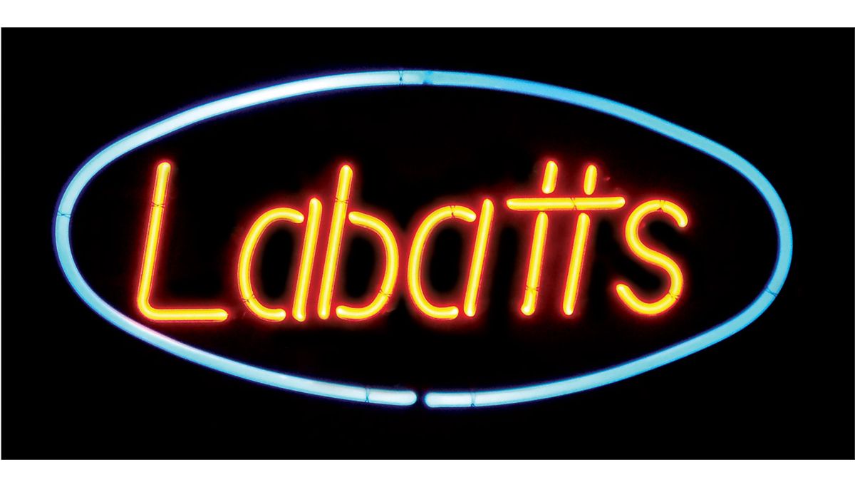 Breweriana neon sign, "Labatts," c.1970's, Exc cond w/minor crazing on back paint, 14.5"H x 23.5"W.