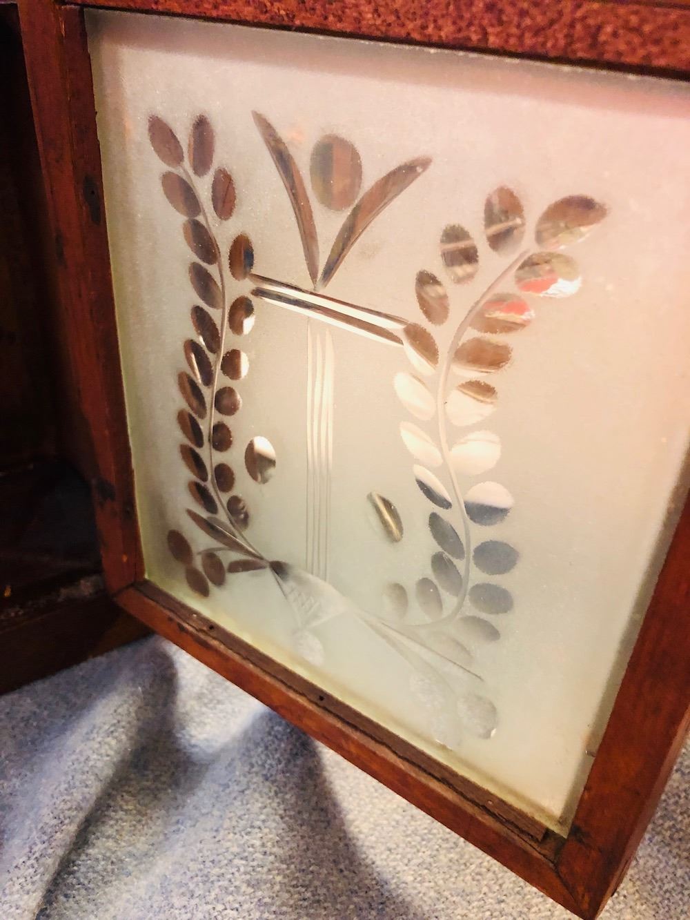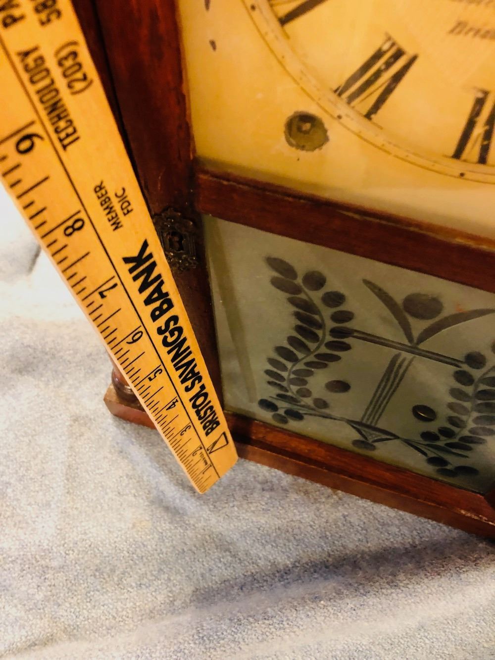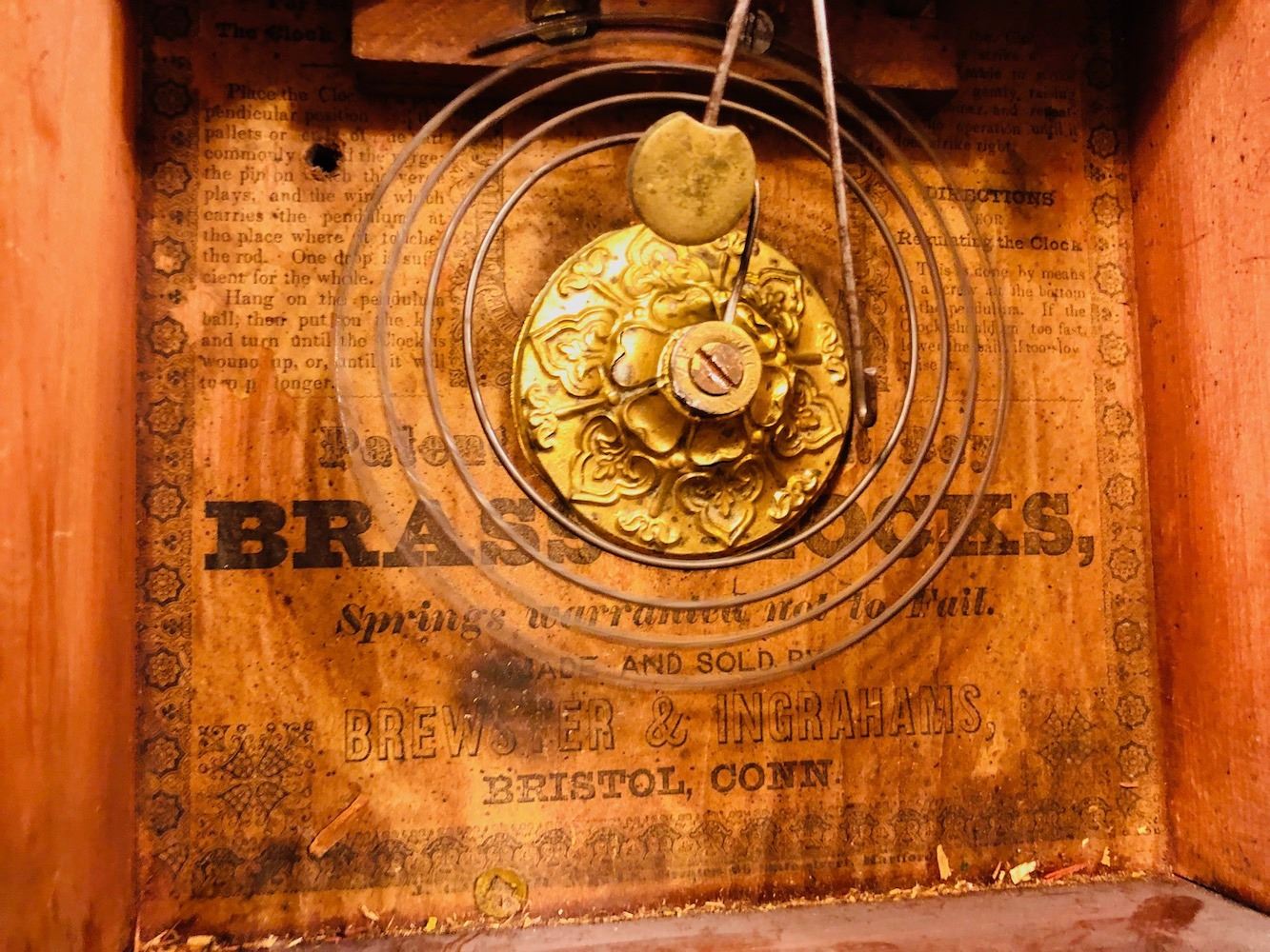 Brewster & Ingrahams Steeple Clock, unbelievable cut etched glass, all original, heavy brass movement, beautiful label and signed dial, Brewster and Ingrahams, Bristol, CT.