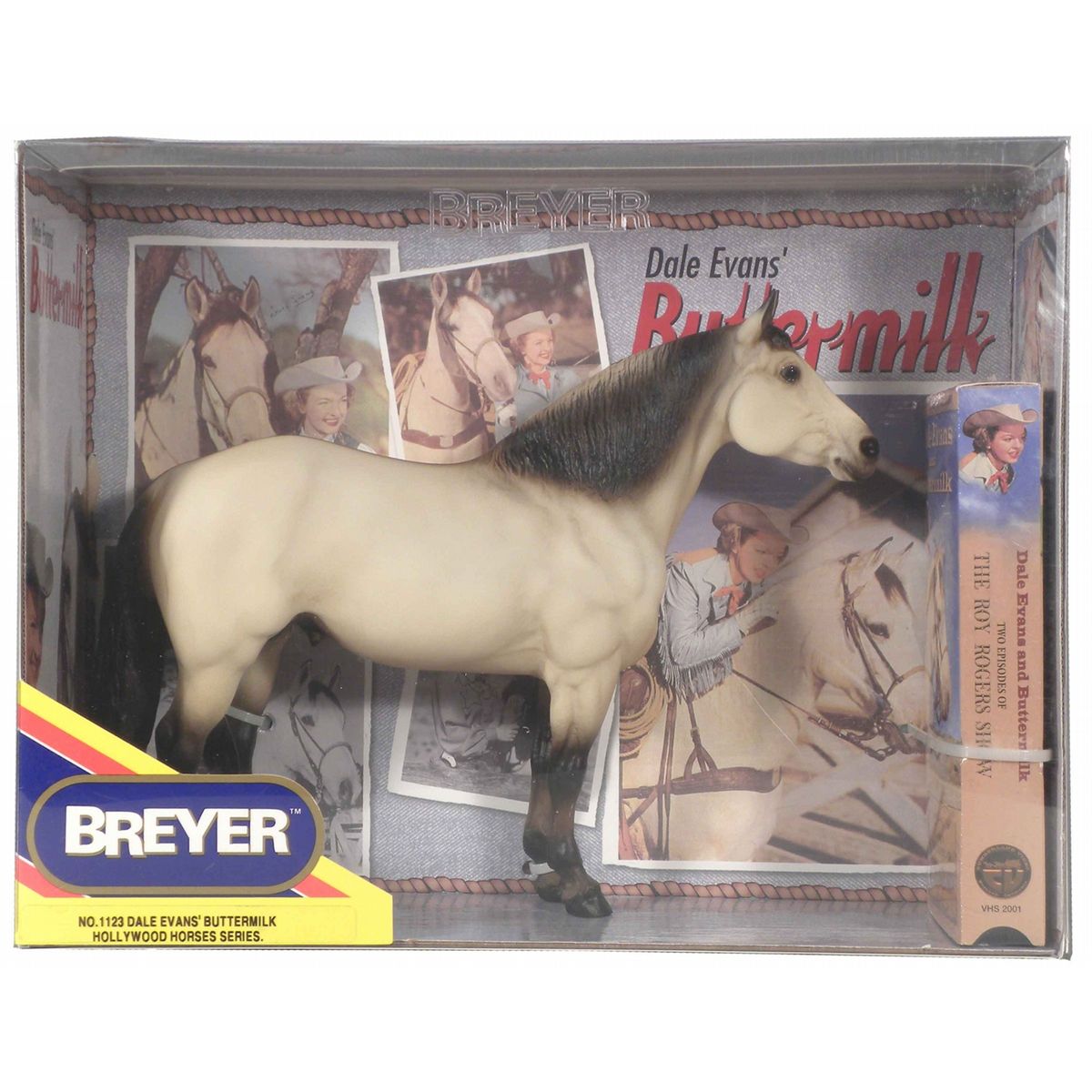 Breyer No. 1123 Dale Evans' Buttermilk. Hollywood Horses Series. New in box, comes with VHS tape of 2 Roy Rogers Episodes. 14 X 11 X 4 1/2 inches overall measurement.