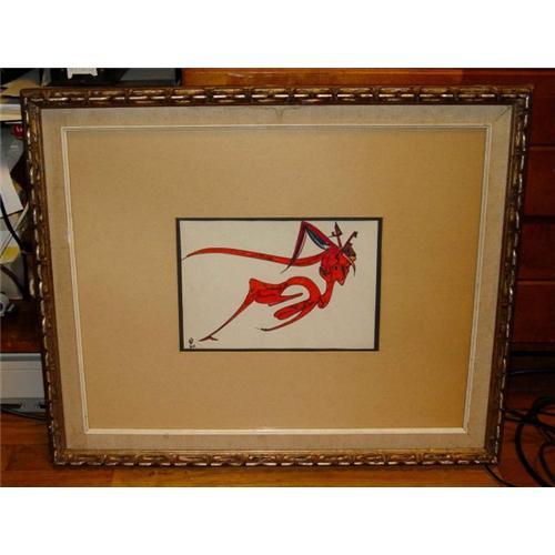 left, double matted and gilt wood framed. <BR>Depicts a strange abstract figure