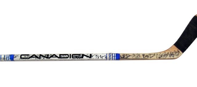 Brian Benning Kings Game Used Hockey Stick Autographed by Benning & Team Members - Brian Anthony Benning, professional ice hockey defenseman, played ten seasons in the National Hockey League with the St. Louis Blues, Los Angeles Kings, Philadelphia Flyers, Edmonton Oilers, and Florida Panthers. Perhaps his best years are remembered playing with the Kings. This is Brian Benning’s #2 custom Pro Edition all fiberglass actual game-used hockey stick autographed by Benning, and numerous King team members, including Steve Kasper #11, Tim Watters #5, Bob Kuderlski #37, Tony Granato #21, Tomas Sandström #28, Kelly Hrudey #32 and many more . This hockey stick has the name BENNING stamped on one side. (Approx. 61 1/2" long).