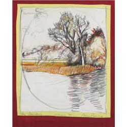 Brian Bourke HRHA (b.1936) NEAR JAMESTOWN, COUNTY ROSCOMMON signed lower right; inscribed and dated [Autumn 1985] lower left watercolour, crayon and pencil on paper 51 by 41cm., 20 by 16in. Provenance: Caroll Gallery, Longford; Private collection, Dublin The Jamestown canal was built in the eighteenth century to bypass the un-navigable part of the Shannon between the village of Jamestown and the Albert Lock, near Drumsna.
