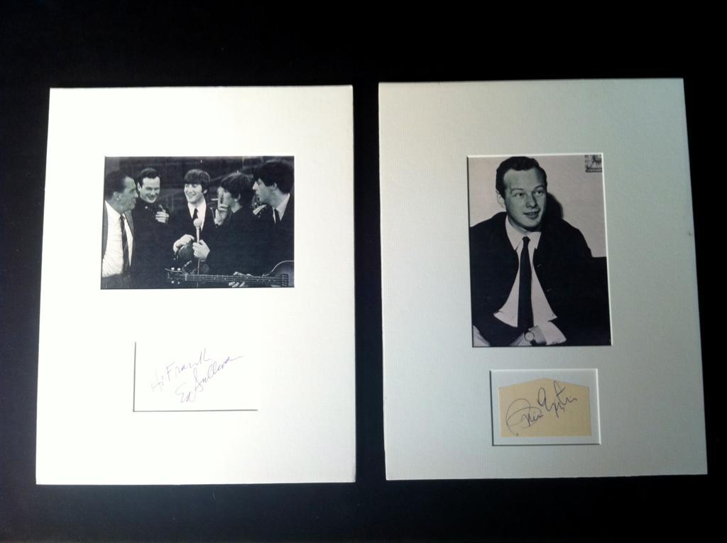 Brian Epstein & Ed Sullivan Autographs - Beautifully matted original autographs, each with a reproduction photo. Ed appears with Brian, John, Ringo and Paul. Matted (11" x 14")