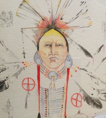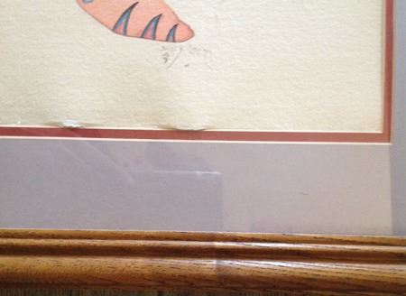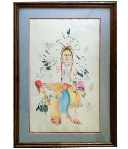Ca. 2003, Original pen and watercolor depicting a fan dancer. 30" x 19" (38" x 27" framed)