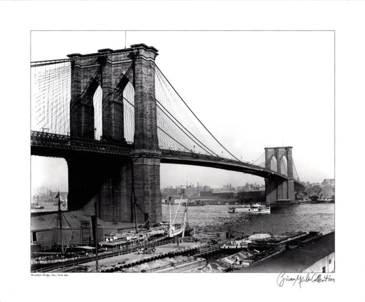 Artist: Brian MerlisTitle: Brooklyn Bridge, New York, 1910Medium: GicleePaper size: 11 x 14 Image size: 9 3/8 x 11 3/4 Condition: ExcellentBiographyBrian Merlis was born in Brooklyn in 1955. As an adult he began collecting picture postcards of Brooklyn and soon expanded to ephemera -- old printed matter like posters, ads and theater programs -- and, especially, documentary photographs. Brian's work focuses on the west end of Long Island. He is considered the leading authority on the history of Kings County, known to most of us as Brooklyn. That is where he was born and raised. Brian's website, www.Brooklynpix.com, offers 2,000 images selected from his important archive of early Brooklyn and New York City. Photos from his collection have been used to create bank murals, restaurant and office decorations, have been seen on many television show sets, and have been used in Ken Burns-directed documentaries. A consultant to experts working with architects and landmarks preservationists, Brian has built what many now consider a private historical society. His collection is not only photos, but includes books, maps, ephemera, film, post cards, and rare documents. Brian taught music and special education classes for 25 years, and has worked as a professional musician.