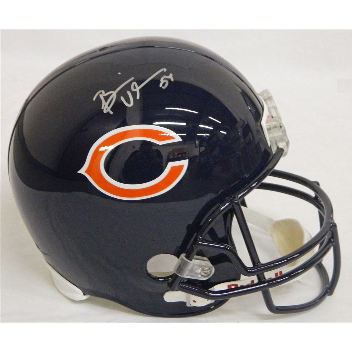 Brian Urlacher Signed Bears Riddell Full-size replica helmet. Item comes with a Schwartz Sports Memorabilia tamper-proof numbered hologram and Certificate of Authenticity which can be verified online.