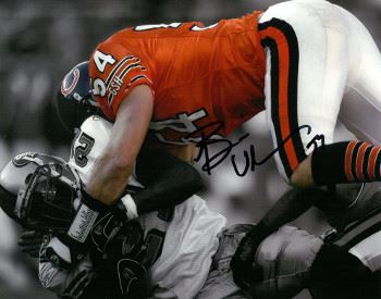 Brian Urlacher of the Chicago Bears was named 2000 NFL Rookie of the Year and never looked back. The talented middle linebacker has already tallied well over 1,000 tackles, is a perennial Pro Bowler, and in 2005 earned NFL Defensive Player of the Year honors. Brian Urlacher has signed this Chicago Bears 8x10 Photo. Certificate of Authenticity from Athlon Sports.