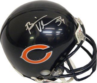 Brian Urlacher spent his entire 13-year career playing for the Chicago Bears of the National Football League. He played college football for the University of New Mexico, where he was recognized as an All-American and became one of the school's most decorated athletes. The Bears selected Urlacher with the ninth overall pick in the 2000 NFL Draft. Urlacher quickly established himself as one of the NFL's most productive defensive players. After winning the NFL Rookie of the Year Award in 2000, he was elected to eight Pro Bowls, and won the NFL Defensive Player of the Year award in 2005. His playing style, accomplishments and reputation made him one of the team's most popular players. He retried in 2013. Brian Urlacher has hand signed this Chicago Bears Replica Mini Helmet. A LOJO Sports Hologram and certificate of authenticity from Athlon Sports.