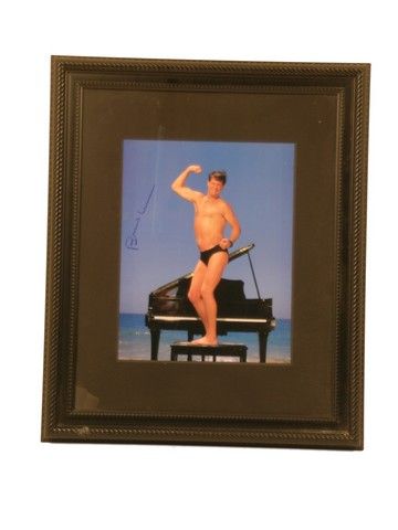 From the legendary Rolling Stone Magazine Portfolio "Crazy Sexy Cool" showing rock stars and celebrities in their most amazing poses, here is an extra large beautifully framed color photo of Brian Wilson in a bathing suit, standing on a grand piano right on the beach! This great collectable is personally signed by Wilson. (Photo is 11"x14", matted in a large Plexiglass covered professional frame 19"x23").