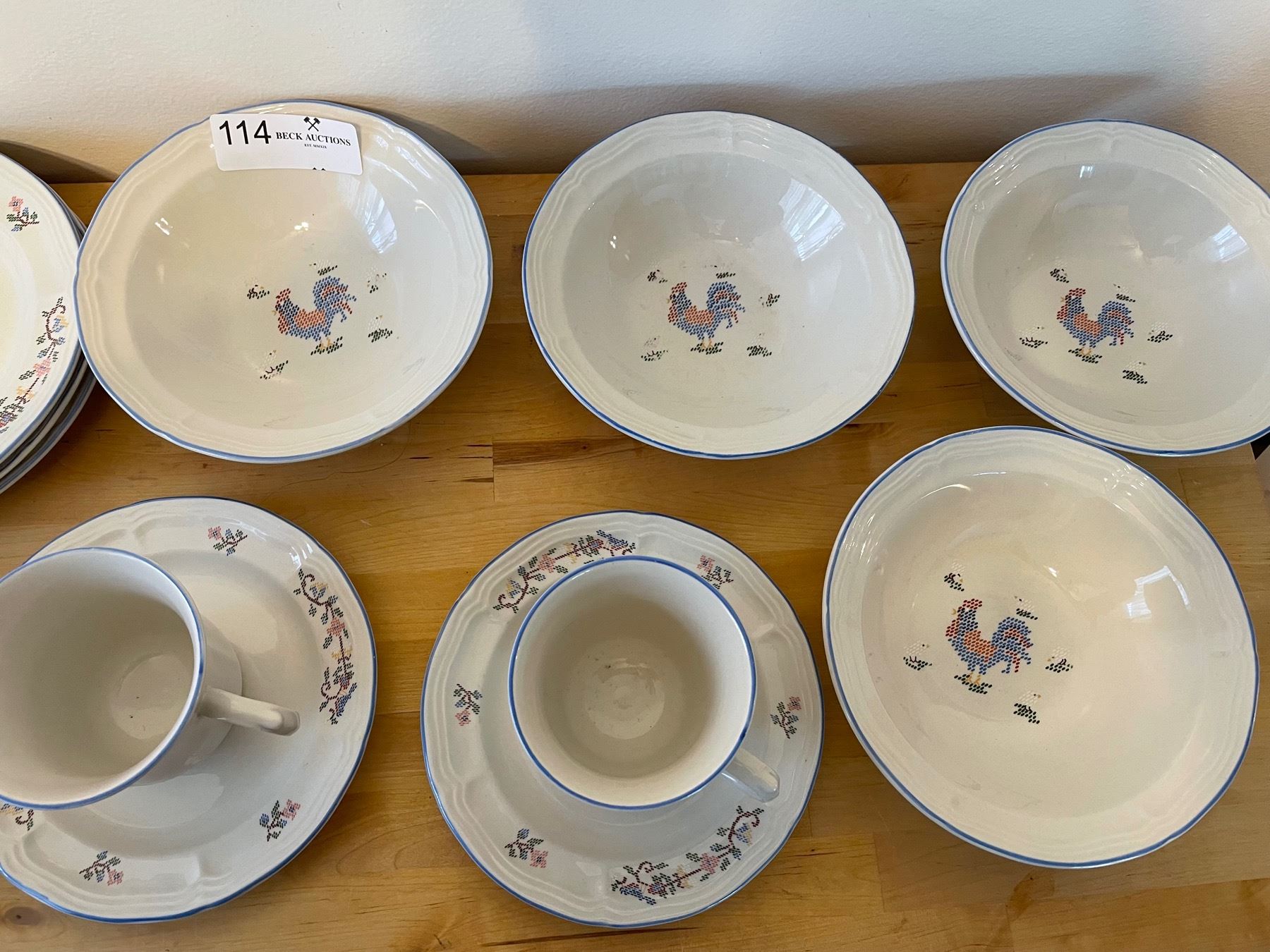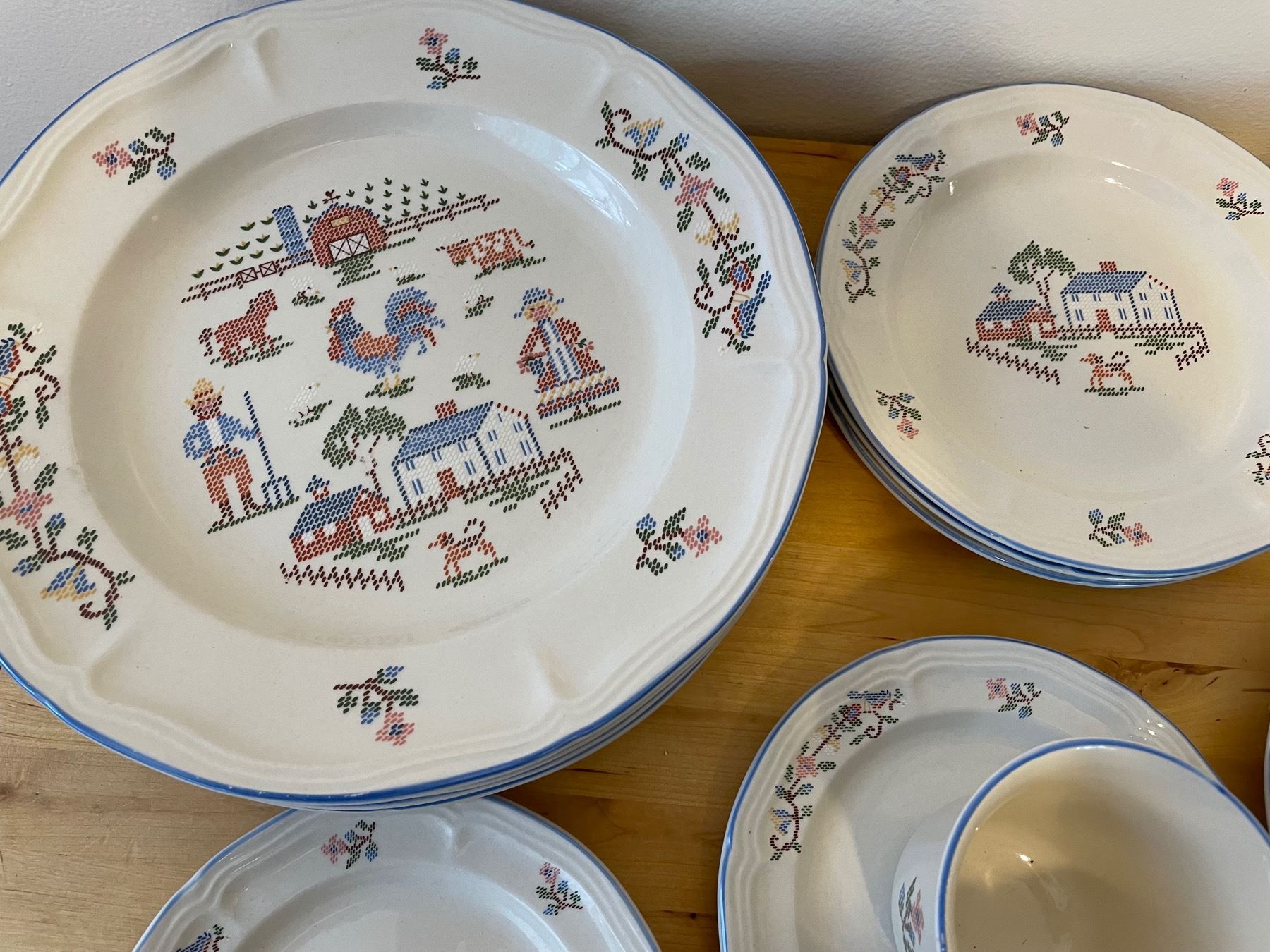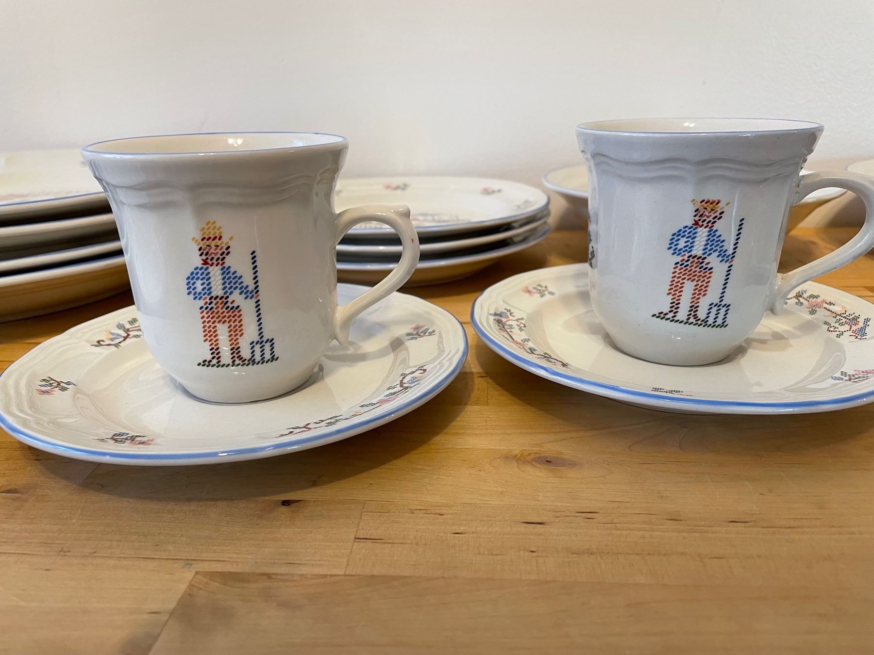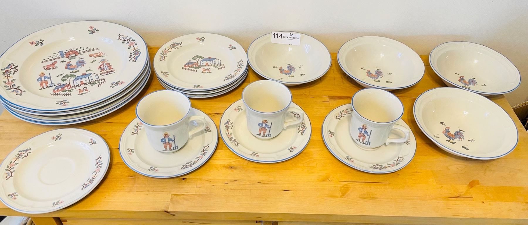 ncludes 4 x dinner plates 4 x bowls, 3 x side plates, 4 x coffee cups. No chips or cracks.