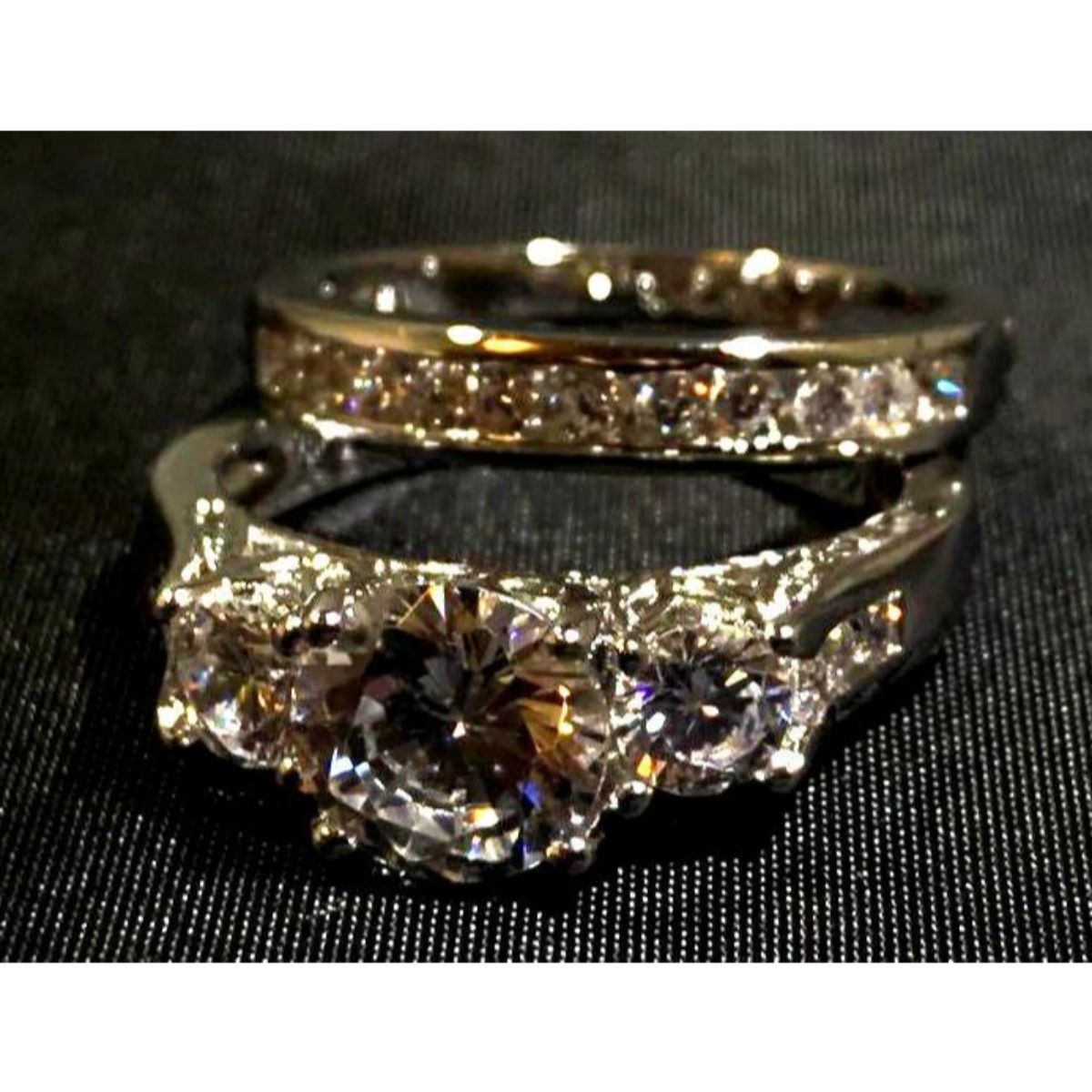 CUBIC ZIRCONIA PROMISE HALO ENGAGEMENT BRAND RINGS SETS GOLD-PLATED RING SIZE 6