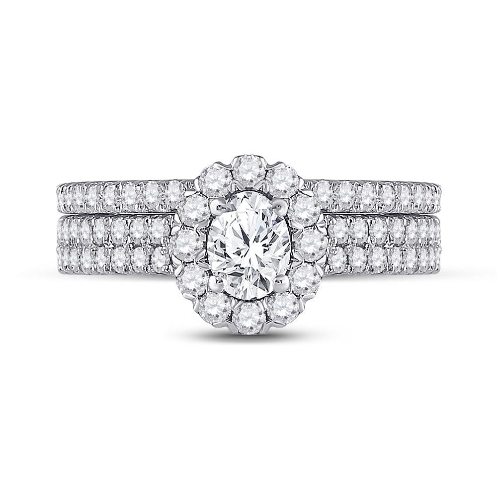 14kt White Gold Oval Diamond Bridal Wedding Ring Band Set 1-1/2 Cttw.
