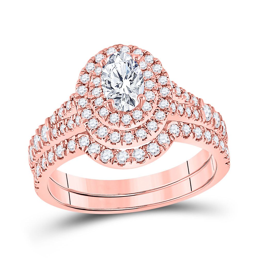 14kt Rose Gold Oval Diamond Bridal Wedding Ring Band Set 1-1/4 Cttw.